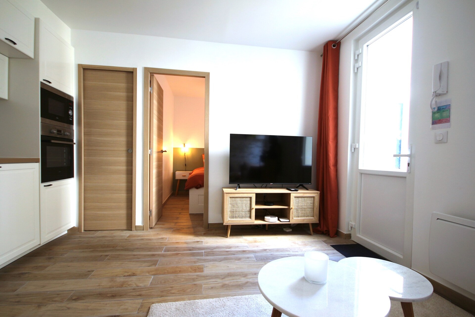 En entrant dans l'appartement, vous découvrirez une pièce principale accueillante, agrémentée d'un confortable canapé convertible 2 places. La cuisine ouverte, entièrement équipée et aménagée, vous permettra de préparer de délicieux repas et de profiter de moments conviviaux. Vous trouverez également une salle d'eau entièrement indépendante pour plus d'intimité.